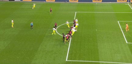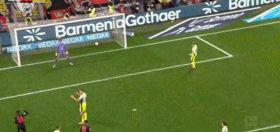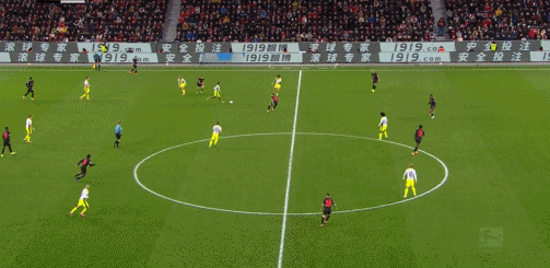 第41分钟,安塞尔米诺力压防守头槌破门,多特1-0!