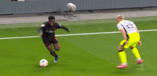 第83分钟,马扎传中,科法内抢点巧射破门,勒沃库森1-2扳回一城!